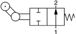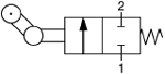 One way roller operates valve only in one direction. Used as a pneumatic limit switch or position detector. Roller arm travel is 3/8” (10mm). Actuation force is 4.5 Lbs.